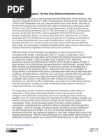 not be anything wrong with being happy during our mortal lives. With all of the beauty that surrounds humanity, the Puritans chose only to see the ugly and continue punishing themselves for their mortal damnation. This leads to one more, and possibly the greatest, of Malvolios flaws: self-love. Many people, throughout time and still today, love themselves above everything else. It causes people to believe themselves capable of accomplishing impossible tasks. Malvolio sees himself as a handsome noble man, even though he has not one drop of noble blood running through his veins (Monroe). He believes that it is sensible for women to fall madly in love with him because his sick self-love allows him to understand all of the reasons to love him. In effect, he does not really love Olivia. He romances her for his ego and because he wants her wealth and power. He fails to remind himself of the fact that even if Olivia loved him she could never marry him because of his social status. In Elizabethan times, no noble woman would ever be allowed to marry her servant (Leimberg). He likes to see things the way he wants them to be and deceives himself just to perpetuate his delusion. This is the reason he is not swayed by the apparent misunderstanding that arises when he confronts Olivia in Scene III in his cross-gartered yellow stockings. It seems like he purposely ignores her confusion in order to continue with his believed reality because he wants so much for it to be true that nothing could convince him that it is not. The symbolism continues when Malvolio is hauled off to a dark prison. Maria and Sir Toby lock him in the darkness to punish him and continue on with their prank. I believe that they are metaphorically trying to make him see the light. Everyone else was able to see that he was alienating himself through his selfish, egotistical behaviour, except for him. The prison is the most vivid physical image of a trapped and isolated self. The selflove of which Olivia accuses him is a severe limitation, isolating him in the world of his own mind; his physical imprisonment. It is merely the symbol of his psychological and spiritual imprisonment. The prison also serves as a symbolic hell because egotism and self-love are a kind of damnation (Dean). The imprisoned Malvolio supports this theory because when asked how dark his prison was, he stated it was dark as hell (IV.iii.306). I believe that this dark prison relates Malvolio to the Puritans because of the previously stated belief they held that life on earth was a hell created for the sole purpose of suffering for sins commited in a previous existence. By the end of the play, there are some who begin to feel pity for Malvolio because they believe that he may have been punished too harshly (Sparknotes). I do not agree with this statement because Malvolio does not represent a single person, but rather an institution of Puritanism and general character flaws of humanity. Shakespeare was using Malvolio in order to portray the Puritan society and not any single person. I do not think that Malvolio was meant to connect with the audience on any personal level. I think his character was created in order to speak out against the Puritans and the cultural constraints they were trying to force on society. The reason the ending can not be entirely happy is because Shakespeare knew that the war against the Puritans was not over and that it may have been possible for them to gain enough power to, one day, shut down the theatres. He was right, but luckily for us, it did not last.