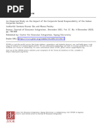 fulfilling a firms economic and legal obligations, to its ethical responsibilities to avoid harm or social injuries, even if the business might not appear to benefit from this. It may be to SCG advantage to let its CSR stakeholders take a greater role in developing and implementing its strategic CSR programs SCG may further benefit from establishing broader CSR networks with its employees, customers, business partners and with non-profit organizations. Conclusion The above results give first empirical evidence that in Italy firms stock prices are not affected by CSR reports even if firms show a greater attention to these issues. The possible explanations of these results could be the following: CSR is a relatively new issue in Italy, and most investors have a low degree of perception of the matter; The quality of disclosure for CSR is not easily measurable; there is a lack of general accepted principles and most firms use CSR disclosure as an additional instrument of advertising, avoiding to give relevant information. Most investors are short-term oriented while CSRs impact is mostly in the medium-long term. At the moment, the small number of firms in the sample is due to few CSR reports available. But, thanks to a greater attention to CSR issues, the sample could be enlarged soon. These aspects could be the main direction of further implementations of our work. References - KAPLAN, R and NORTON, Using the Balanced Scorecard as a Strategic Management System [online] Available from: < [Link] [Accessed 12 July, 2011). - Carroll A. B., 1991, "Corporate Social Performance Measurement: A Commentary on Methods for Evaluating an Elusive Construct", p. 385-401 in J. E. Post (ed.), Research in Corporate Social Performance and Policy, vol. 12, Greenwich, CT: JAI. - Donaldson T., (1989), the Ethics of International Business, the Ruffin Series in Business Ethics, Oxford University Press. - Cooperative Bank, Ethical Purchasing Index [online] Available from :<[Link] >[ Accessed 23 april,2005]. - Donaldson T., (1989), the Ethics of International Business, The Ruffin Series in Business Ethics, Oxford University Press. - Global reporting initiative, Sustainability Reporting Initiatives [online] Available from :< [Link] [Accessed 15 July, 2010]