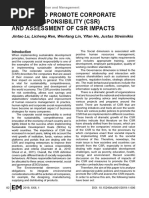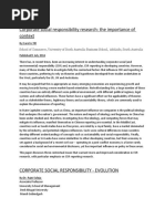 sustainable development and corporate responsibility. Moreover, CSR has a wide range of potential meaning: it can be considered as the private sectors way of integrating the economic, social, and environmental imperatives of its activities. We focus on two main characteristics of CSR: social welfare orientation and stakeholders relationship orientation. AS businesses have increased their adoption of corporate social responsibility practices, managers face growing pressure to justify the allocation of scarce firms resources and accurate measures of corporate social responsibility results are required. Because the corporate image and reputation have been considered as intangible assets and valuable resources a firm can use in order to differentiate itself from its competitors. The reputation is built over time as the result of complex interrelationships and exchanges between a company and its stakeholders. This complexity of interrelationships makes imitation difficult for competitors in the short term. The grand aggregation approach to corporate reputation loses substantial informational content unless multiple lists of stakeholders can be surveyed; this research will be conducted taking into account the perspectives of only two stakeholders. The rule contact by companies integrates social and environmental concerns in their business operations and in their interaction with their stakeholders on a voluntary basis. When you review each of these, they broadly agree that the definition now focuses on the impact of how you manage your core business. The increasing attention to CSR is firstly based on its capability to influence firms performance. The researches in this field examine how CSR can provide firms with an incremental gain. For example, researchers have considered purchase intentions, increased sales, enhanced image, and improved employees morale as benefits of CSR. In particular, regarding to this aspect, the literature consists of three principal strands: the existence of a positive correlation between CSR and financial results, the lack of correlation between CSR and Many studies about the relationship between CSR and performance have focused their attention over a variety of other important characteristics that can be possible causes of firms performance. Some researchers have studied the effect of firms dimension, industrial sector, age, leverage level and intangible [Link] is possible to assume that the biggest firms are able to have a behavior more responsible than the smallest ones. The biggest ones probably pay more attention to the relationship with external stakeholders. Moreover, the firms dimension affects the link between certification and performance: at the beginning firms strategies are focused on the basic survival and just when firm is increasing its dimension because it has crossed the trigger point of survival, it can begin to take care of ethical and philanthropic responsibilities. In the meantime firms dimension can be linked with financial performance through economies of scale .The financial result and the existence of a negative correlation between CSR and financial results. The commitment by business to behave ethically and to contribute to economic development while improving the quality of the life of the workforce and the families as well as the local community and society at large The CSR is a commitment to improving the well-being of a community through discretionary business practice and contribution of corporate resources. Ethical CSR is morally mandatory and goes beyond