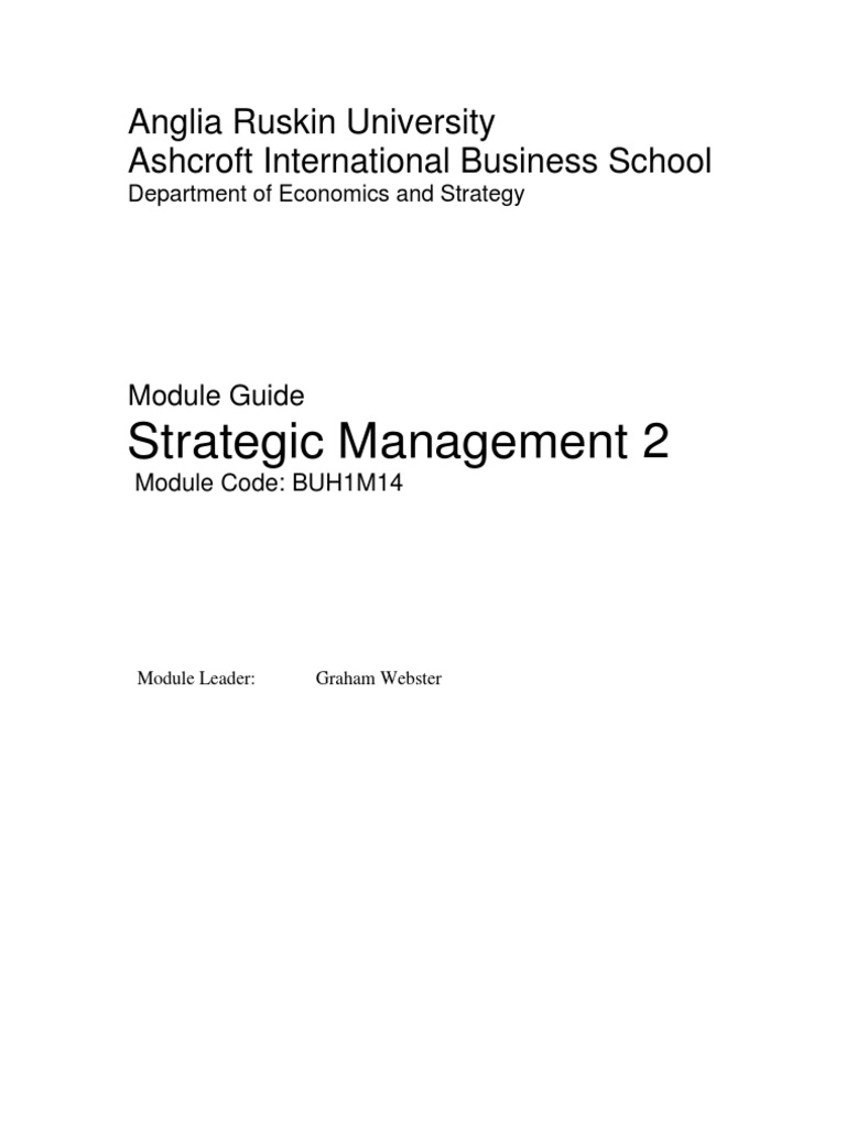 ANGLIA POLYTECHNIC UNIVERSITY MDF-1 Module Definition Form 1. Code: BUH1M14 3. Cost Centre: 6. Scheme: UMS 9. Module Type: Std 2. Title: Strategic Management 2 4. Set: Business and 5. Module Author: Lester Lloyd-Reason, Economics Graham Webster, Lawrence Britt 7. Level: 3 8. Credits: 10 10. Study Hours: 100
