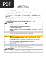 13. Learning Outcomes: On successful completion of this module students will be able to: 1. Understand the strategic issues and choices facing business organisation, analysing the strategic options available. 2. Interpret findings and make recommendations as to the appropriateness of strategic options. 3. Understand the resource implications of the strategic management process. 4. Analyse the implementation issues facing the business organisation. 5. Understand the role of leadership and innovation in the management of change. 14. Catalogue Summary: This module is designed to build upon both knowledge gained elsewhere, and in the module Strategic Management 1, through the analysis of strategic options and the consideration of the strategy implementation issues. Following an analysis of the competitive environment, Strategic Management 11 is concerned with two central items. Firstly, an analysis of the strategic options available and an evaluation of those options to identify the most appropriate. That is, attempting to use organisational strength to exploit opportunities identified through competition analysis. Secondly, a consideration of the issues involved in the implementation of the chosen strategy with regard to resources, people and systems. That is, the main issues involved in the management of change. 15. Delivery Method: Class based Delivery Period Type: Number of Periods: 1 Start Delivery Period: Semester If the Delivery Method is Classroom Based please complete the following table: Activity Activity Comments Learning Duration(Hrs) Outcomes Lectures 12 1-5 1 Tutorials 12 1-5 2 Student 76 3 managed learning 100 Total Hours