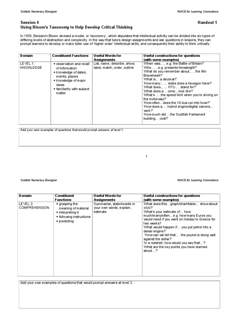 Session 4 Using Blooms Taxonomy to Help Develop Critical Thinking