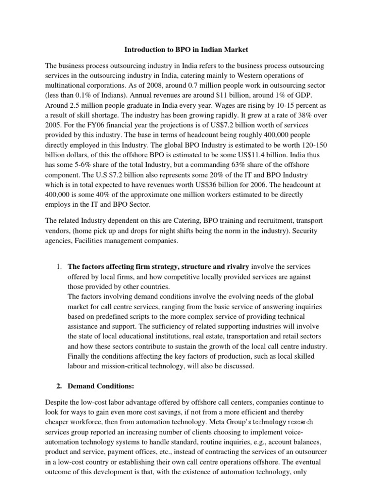 Introduction to BPO in Indian Market The business process outsourcing industry in India refers to the business process outsourcing