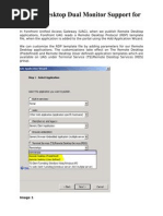 To use this feature, you must: 1. Connect using the Remote Desktop Client 7.0 (mstsc.exe) available initially on Windows 7/Windows Server 2008 R2. 2. Enable Multimon using one of the three methods described below: a. Click Use all monitors for the remote session in the client (mstsc.exe) window. b. Use the /multimon switch on the mstsc.exe command line. c. Add Use Multimon:i:1 to the RDP file.