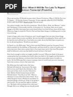 "In laying off burdens, let us not forget to lay self at the feet of Christ. "Hand yourself over to Jesus, to be molded and fashioned by Him, that you may be made vessels unto honor, Your temptations, your ideas, your feelings, must all be laid at the foot of the cross, Then the soul is ready to listen to words of divine instruction, Jesus will give you to drink of the water which flows from the river of God. Under the softening and subduing influence of His Spirit your coldness and listlessness will disappear. Christ will be in you a well of water, springing up into everlasting life,"In Heavenly Places. 107. "The only reason that we have not remission of sin is that we have not acknowledged to Him whom we have wounded by our transgressions, whom we have pierced by our sins, that we are at fault and in need of mercy. The confession that is the outpouring of the inmost soul will find its way to the heart of infinite pity; for the Lord is nigh unto him that is of a broken heart, and saveth such as be of a contrite spirit."l Selected Messages, 326. "Blessed are they that mourn, for they shall be comforted, "Matthew 5:4. "The mourning here brought to view is true heart sorrow for sin . . God reveals to us our guilt that we may flee to Christ, and through Him be set free from the bondage of sin . , In true contrition we may come to the foot of the cross and there leave our burdens."Thoughts From the Mount of Blessing, 9lD, "The humble and broken heart, subdued by genuine repentance, will appreciate something of the love of God and the cost of Calvary; and as a son confesses to a loving father, so will the truly penitent bring all his sins before God. And it is written, 'If we confess our sins, He is faithful and just to forgive us our sins, and to cleanse us from all unrighteousness."Steps to Christ, 41. "Sins not repented of are sins not forgiven. Those who think themselves forgiven for sins of which they have never felt the sinfulness and over which they have never felt contrition of soul, only deceive themselves."Our High Calling, 82. "A repentance such as this, is beyond the reach of our own power to accomplish; it is obtained only from Christ, who ascended up on high, and has given gifts unto men."Steps to Christ, 25, "There is great need today of just such sincere, heartfelt repentance and confession. Those who have not humbled their souls before God in acknowledging their guilt have not yet fulfilled the first condition of acceptance. If we have not experienced that repentance, which is not to be repented of, and have not confessed our sin with true humiliation of soul and brokenness of spirit, abhorring our iniquity, we have never sought truly for the forgiveness of sin; and if we have never sought we have never found the peace of God. "5 Testimonies, 636, 4 REPENT AND TURN AWAY FROM SIN "We cannot meet Christ in peace with one sin unrepented of, unconfessed, and unforsaken,"Review and Herald, March 17,1891. "Repentance includes sorrow for sin, and a turning away from it. We shall not renounce sin unless we see its sinfulness; until we turn away from it in heart, there will be no real change in the life, "Steps to Christ, 23. "Repentance is the first step that must be taken by all who would return to God. No one can do this work for another. We must individually humble our souls before God and put away our idols, When we have done all that we can do, the Lord will manifest to us His salvation." Patriarchs and Prophets, 590, "The heart must be yielded to Godmust be subdued by divine gracebefore man's repentance can be accepted. "Patriarchs and Prophets, 587, "Repentance is turning from self to Christ; and when we receive Christ, so that, through faith, He can live His life in us, good works will be manifest,"Thoughts From the Mount of
