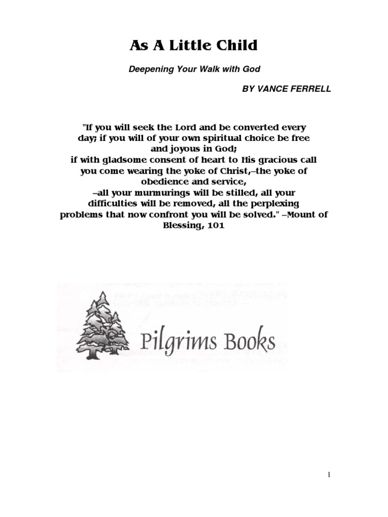 PB-2351 As a Little Child by Vance Ferrell Published by Pilgrims Books Beersheba Springs, TN 37305 USA Printed in the United States of America Cover and Text Copyright 1999 by Pilgrims Books