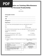 Lectures [ ] audio visuals [ ] All the above [ ] 7. Are you satisfied with the training method Highly Satisfied [ ] Satisfied [ ] Dissatisfied [ ] Highly Dissatisfied [ ] 8. Your organization consider training as a part of organizational strategy Strongly agree [ ] Agree [ ] Neither agree nor disagree [ ] Highly Disagree [ ] 9. Training help you in improving skills and tactics for effective execution of job Strongly agree [ ] Agree [ ] Neither agree nor disagree [ ] Highly Disagree [ ] 10. Training is an interactive session Agree [ ] Disagree [ ] 11. Training need assessment is done properly Agree [ ] Disagree [ ] 12. Rate the training programme based on the following Name Very Good Good Average Poor Very Poor Environment Infrastructure Training Aid Trainer 13. Rate the quality of trainer in scale of 1 5 (1-very good and 5-very poor) No Quality Very Good Good Average Poor 1 2 3 4 5 6 Qualification Skill Encourage Participants Knowledge Friendly