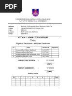 Rotational Inertia of various objects about an axis through the center of mass Solid Disc or cylinder, radius R Hollow Disc, inner radius R2, outer radius R1 Bar, length A and width B 2 I = MR I = M (R12 + R22) I = 1/12 M (A2 + B2 ) Additional Exercises Rotational Inertia about axis parallel to center of mass The parallel axis theorem states that the rotational inertia of an object about any axis is equal to the rotational inertia about a parallel axis through the center of mass plus the mass times distance between the axis squared. I = ICM + Mh2. (Note this h is not height!) Place an object off-center on the platform and determine the rotational inertia about this new axis. Make a sketch of the arrangement, label all dimensions and confirm the parallel axis theorem. Conservation of energy For one set of data show that energy is conserved as the mass falls (decreasing its potential energy) and both the mass and rotating platform accelerate (increasing their kinetic energy). Questions: Calculate the ratio of the mass of the disc to the mass of the ring. Calculate the ration of the rotational inertia of the disc to the rotational inertia of the ring. Compare these two ratios. If they are not equal then rotational inertia must not depend on mass only. What other factors effect rotational inertia? Discuss. Compare the moments of inertia of the different objects. Discuss how they differ in their physical dimensions, masses, and how the mass is distributed. Do the measured values for rotational inertia vary as you would predict? How do your moments of inertia compare to the theoretical predictions? Discuss possible sources of error or uncertainty. (Do your objects match their theoretical descriptions? How big of an error is any difference?) Why doesnt rotational inertia depend on the height (thickness) of the objects? Compare the rotational inertia for rotating on-center and off-center. Does it vary as you would expect?