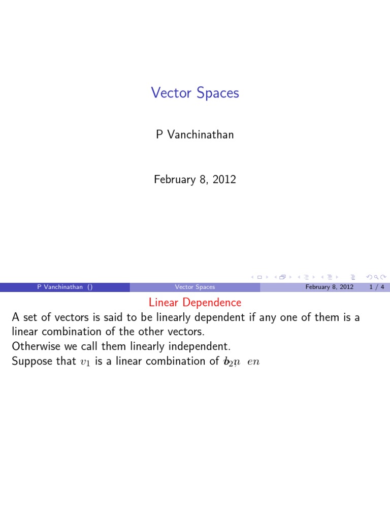 P Vanchinathan () Vector Spaces February 8, 2012 1 / 4