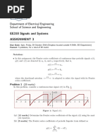 How does the discrete Fourier transform relate to the other transforms? First of all, the DFT is NOT the same as the DTFT. Both start with a discrete-time signal, but the DFT produces a discrete frequency domain representation while the DTFT is continuous in the frequency domain. These two transforms have much in common, however. It is therefore helpful to have a basic understanding of the properties of the DTFT. Periodicity: The DTFT, X (ej ), is periodic. One period extends from f = 0 to fs , where fs is the sampling frequency. Taking advantage of this redundancy, The DFT is only dened in the region between 0 and fs . Symmetry: When the region between 0 and fs is examined, it can be seen that there is even symmetry around the center point, 0.5fs , the Nyquist frequency. This symmetry adds redundant information. Figure 1 shows the DFT (implemented with Matlabs FFT function) of a cosine with a frequency one tenth the sampling frequency. Note that the data between 0.5f s and fs is a mirror image of the data between 0 and 0.5fs .
