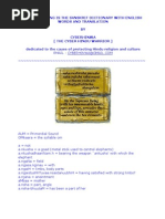 Robert L. Peck 2007 Foreword: This dictionary contains the technical meanings of early Sanskrit words used to describe the inner nature and powers of individuals. Sanskrit is actually more complex than English in having many different meanings for one word. In English, for instance, the word potential has a technical meaning of a metaphysical force (such as voltage) as well as the common meaning of possibility. Technical Sanskrit can be compared to Ancient Greek which also has many similar meanings of words used to describe the creative powers and forces of individuals. Both languages describe the higher powers of creativity, strength, and vision as originating within individuals. These inner powers were described as allegorical gods who existed within the hearts of individuals and were fed, animated or vitalized by the internal secretion of an inner nectar. In assembling this dictionary and using modern terms, it was surprising how easy this task became since the words which described the characteristics of the inner vitalizing nectar as well as its production could be referenced to the modern science of endocrinology (meaning inner secretions). The non-technical or popular aspects of words arose in both Greek and Sanskrit languages when the inner powers of individuals were denied and argued to exist only remotely, either in heaven or within institutions. During this time, the heart was redefined from being deep within the bowels to being within the beating heart in the chest. The inner vitalizing nectar was redefined to come from some unknown plant or ritual and the words describing its inner generation were redefined to be external rituals done by priests on a sacred plant. The inner god-like nature of an individual was denied and forgotten, and the only power acknowledged to exist was that of the conditioned brain comparable to a programmed computer. The Sanskrit technical meanings were selected largely from the Monier-Williams Sanskrit to English Dictionary which has retained many of the technical meanings of words along with the various alterations over the past millennia. Where possible, modern scientific terms or viewpoints were added, if they did not distort the ancient meaning. The following dictionary uses Veda Type characters instead of the earlier Indo-Romanic letters first used in transliteration. This facilitates entering the letters into a type setting machine or computer. The following table lists the Indo-Romanic (IR) letters with the corresponding Veda (VT) letters directly underneath. The letters which are the same in both systems are not listed. The words follow the English alphabet sequence rather than the Vedic sequence.