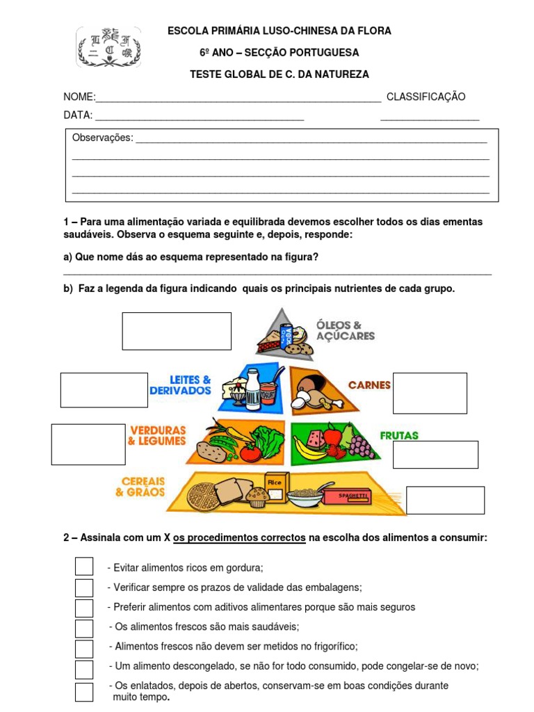 saudveis. Observa o esquema seguinte e, depois, responde: