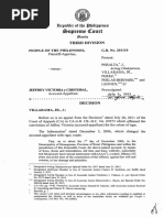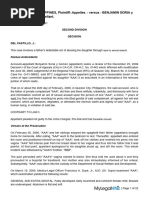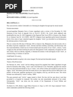 When arraigned, appellant entered pleas of not guilty. Whereupon, trial on the merits ensued. On the first charge of rape, AAA testified that she was in their home at xxx, Cavite in June 1997.1awphi1.nt Her mother was in Isabela at the time. Her youngest sibling, BBB, and she were sleeping inside her parents room when her father carried BBB and placed BBB on the floor. He told her to be quiet as he undressed her, kissed her lips, her breasts, then inserted his penis in her vagina. He was on top of her for around 10 minutes. She kept still because she was afraid of him, as she had always been because he was a drug dependent. Though he did not threaten her, she told no one of the incident.4 On the second charge of rape, AAA testified that appellant raped her eight times from January to December 1998 in their home and she did not tell her mother because she was afraid of appellant.5 AAA testified that the third rape happened sometime in the morning of April 1999 in their house while her mother was at work. Appellant called her to come in her parents room. When she refused, he came out, took her by the arms and dragged her into the room. Inside, he undressed her, kissed her body and raped her. After the incident, she told a cousin what happened and the latter brought her to the National Bureau of Investigation (NBI) where her complaint-affidavit was executed.6 The NBIs medical examination in Living Case No. MG-99-477 revealed that AAAs hymen had an oldhealed laceration at the four oclock position and that the hymenal orifice admitted a tube 2.5 cm. in diameter.7 Appellant denied raping his daughter. As alibi, he claimed that he was often away from home and usually returned only four days after because he was hooked on gambling and drugs. He would usually return home in the morning after his wife had gone to work to avoid quarrels. By then, AAA would already be in school. He admitted being in a rehabilitation center for sometime, but continued to take drugs upon his release. He also admitted that he would beat and threaten his wife if she did not give him money for drugs. He testified further that in January 1999, he left the house, stayed in Pasig and returned home only to steal his wifes car. His wife threatened to have him arrested if he did not return the car. He asked his cousin to return it minus the stereo. When he returned home, his family had gone and he started to sell their things to buy shabu.8 After trial, the lower court found appellant guilty beyond reasonable doubt of the crime of qualified rape in Criminal Cases Nos. 7197-99 and 7199-99. Appellant was acquitted in Criminal Case No. 7198-99. The dispositive portion of the Decision9 dated July 17, 2002 reads: WHEREFORE, finding the accused guilty beyond reasonable doubt of the felony of rape as charged in the informations in criminal cases nos. 7197-99 and 7199-99, said accused is hereby sentenced to die by lethal injection and to pay the private complainant the amount of P50,000.00 as indemnity, another sum of P50,000.00 as moral damages, P25,000.00 as exemplary damages and the cost of this suit. The accused however is hereby acquitted of the felony of rape as charged in the information in criminal case no. 7198-99.