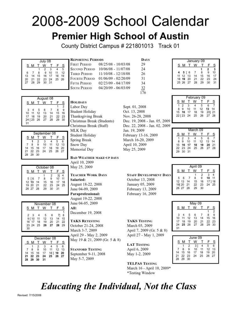 Christmas Break (Staff) Dec. 22, 2008 - Jan. 02, 2009