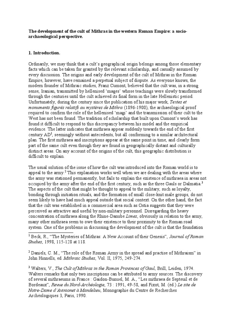 The development of the cult of Mithras in the western Roman Empire: a socio-archaeological perspective.1. Introduction.
