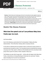 But one-to-many speechsuch as picketing, signs, drive-in movie screens, inscriptions on clothing, and the likeis generally constitutionally protected even when some of its viewers are likely to be offended. 27 So long as some of the viewers are likely to be open to the message, the message remains protected, precisely because restricting the message would cut off constitutionally valuable communication to willing listeners as well as constitutionally valueless communication to unwilling listeners. To be sure, one-to-many speech about a particular person will very likely be seen by that person. The subject of the speech might run across the speech the same way that others run across itfor instance, if one blog commenter is saying rude things about another blog commenter, or about the blogger. Or some other reader might alert the subject to the speech, and the subject might feel it necessary to figure out what others are saying about him. But in either case, though the target will likely be offended by the speech, other readers may find the speech valuable. Suppressing one-to-many speech would thus unacceptably restrict communication to potentially willing listeners. Of course, this presupposes a First Amendment theory in which either (1) the value of speech stems from its value as a means of persuading, informing, or entertaining listeners or (2) the value of speech also stems from its value as a means for the speakers self-expression, but only when both the speaker and listener consent to such self-expression. 28 One can imagine a contrary theory under which speakers have the power to remonstrate with individual listeners (at least using some one-to-one media), even when the listeners want those communications to stop. But this is not the view that the Court has arrived at (as I will discuss in Part II.C), or that lower courts have arrived at, given the general trend of