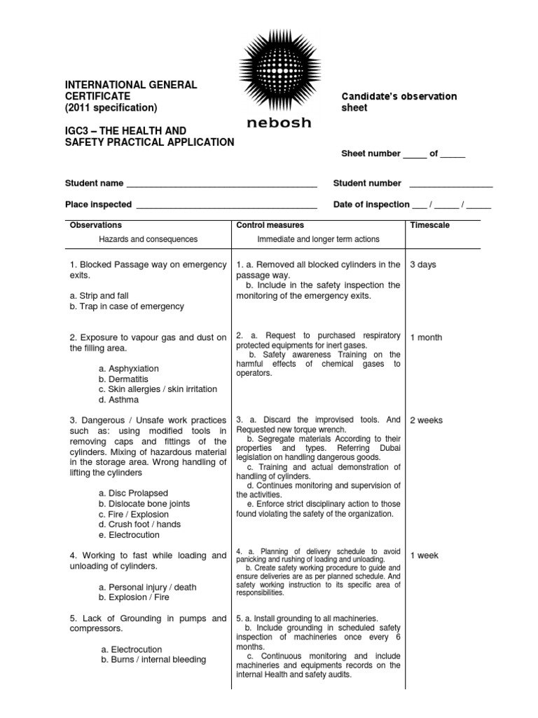 INTERNATIONAL GENERAL CERTIFICATE (2011 specification) IGC3 THE HEALTH AND SAFETY PRACTICAL APPLICATION
