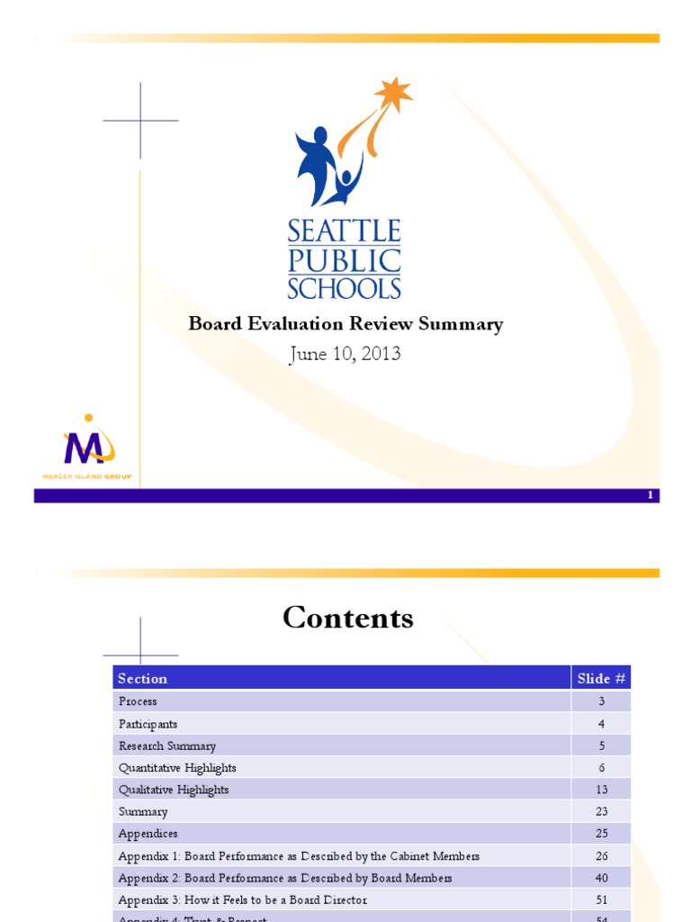 Process Participants Research Summary Quantitative Highlights Qualitative Highlights Summary Appendices Appendix 1: Board Performance as Described by the Cabinet Members Appendix 2: Board Performance as Described by Board Members Appendix 3: How it Feels to be a Board Director Appendix 4: Trust & Respect Appendix 5: Detailed Quantitative Data Board Self Evaluation