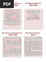 1816 Miner's safety lamp was invented by Humphry Davy 1816 Stethoscope was invented by Rene Theophile Hyacinthe Laennec 1820 The Arithmometer was the first mass-produced calculator invented by Charles Xavier Thomas de Colmar 1822 Charles Babbage designs his first mechanical computer 1821 Electric motor was invented by Michael Faraday 1826 Photography was invented by Joseph Nicephore Niepce 1830 Lawn mower was invented by Edwin Beard Budding 1834 Braille was invented by Louis Braille 1834 Refrigerator was invented by Jacob Perkins 1834 Combine harvester was invented by Hiram Moore 1835 Morse code was invented by Samuel Morse Revolver was invented by Samuel Colt 1838 Electric telegraph was invented by Charles Wheatstone (also Samuel Morse) 1839 Vulcanization of rubber was invented by Charles Goodyear 1842 Anaesthesia was invented by Crawford Long 1843 Typewriter was invented by Charles Thurber 1846 Sewing machine was invented by Elias Howe 1846 Rotary printing press was invented by Richard M. Hoe 1849 Safety pin was invented by Walter Hunt 1862 Revolving machine gun was invented by Richard J. Gatling 1862 Mechanical submarine was invented by Narcs Monturiol i Estarriol 1866 Dynamite was invented by Alfred Nobel 1870 Stock ticker was invented by Thomas Alva Edison 1876 Gasoline carburettor was invented by Daimler 1877 Phonograph was invented by Thomas Alva Edison 1877 Microphone was invented by Emile Berliner 1878 Cathode ray tube was invented by William Crookes 1880 Photophone was invented by Alexander Graham Bell 1885 Motor cycle was invented by Gottlieb Daimler and Wilhelm Maybach 1891 Zipper was invented by Whitcomb L. Judson 1893 Wireless communication was invented by Nikola Tesla 1895 Diesel engine was invented by Rudolf Diesel Radio signals were invented by Guglielmo Marconi 1898 Remote control was invented by Nikola Tesla 1901 Vacuum cleaner was invented by Hubert Booth 1903 Powered airplane was invented by Wilbur Wright and Orville Wright 1907 Color photography was invented by Auguste and Louis Lumiere Helicopter was invented by Paul Cornu Radio amplifier was invented by Lee DeForest 1909 Bakelite was invented by Leo Baekeland 1923 Sound film was invented by Lee DeForest Television Electronic was invented by Philo Farnsworth 1924 Electro Mechanical television system was invented by John Logie Baird 1928 Antibiotics were invented by Alexander Fleming 1931 Iconoscope was invented by Vladimir Zworykin