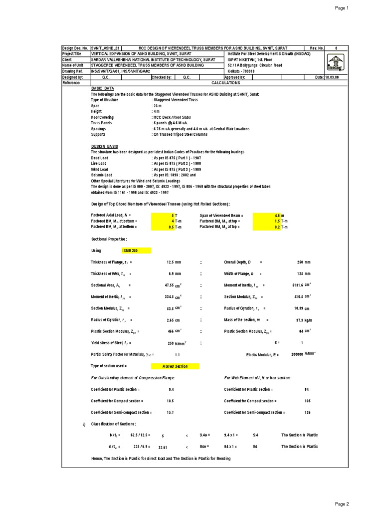 RCC DESIGN OF VIERENDEEL TRUSS MEMBERS FOR ASHD BUILDING, SVNIT, SURAT