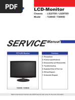 1. Precautions before a Service Adjustment 1) Check whether the devices for the service adjustment are operating normally. 2) Secure a space that is sufficiently wide for disassembling the monitor. 3) Prepare a soft mat on which the monitor will be disassembled. 2. Entering Service Mode Entering: Exiting: Menu Power OFF Brightness 0 Power ON Contrast 0 Hold down the Enter button for five (5) seconds.