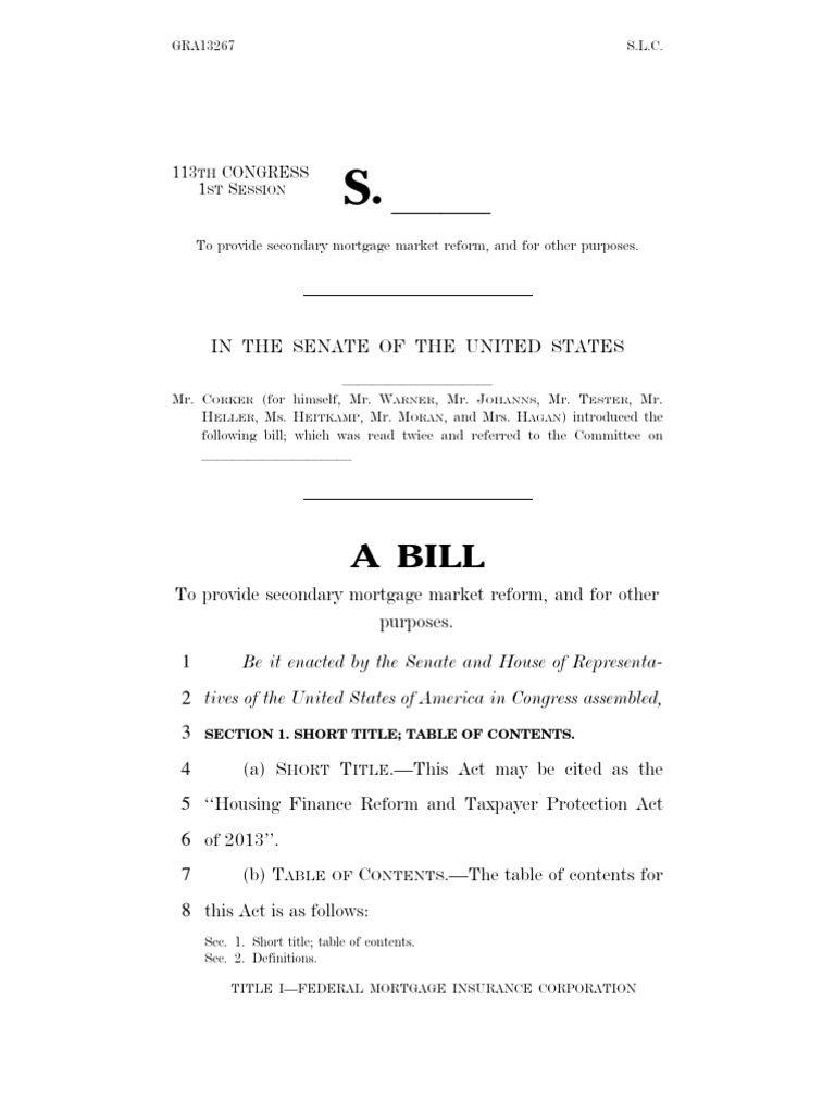 5 Housing Finance Reform and Taxpayer Protection Act 6 of 2013. 7 (b) TABLE