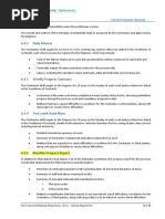 Contents 1. Each Weekly Progress Report shall contain specific details of weekly and cumulative progress percentages planned and achieved for each WORK Site in comparison with the current approved construction schedule. A summary of planned and actual manpower shall be reported for each WORK Site. Planned and achieved percentages of material procurement shall be reported for the project as a whole. A narrative of planned and achieved activities shall be reported under the following categories: Activities Planned For the Current Week Activities Completed During the Current Week Planned Activities Not Completed During the Current Week Activities Planned For the Coming Week 5. A summary of the status of material technical submittals shall be included indicating how many submittals have been submitted for approval, approved, rejected, and awaiting further action by SAUDI ARAMCO or CONTRACTOR. Any submittals deemed to be critical shall be highlighted in this report and an indication given as to who needs to take action to gain final approval. A copy of the minutes of the CONTRACTORS Weekly Safety Meeting Report shall be included. A summary of the quantity of manpower and equipment on the WORK Sites shall be included for the week being reported on, broken down into the same categories as used in the Daily Report.