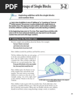 n the Counter, a number can be represented in one and only one way. There is more flexibility off the Counter. It is important for children to realize that the number of single blocks does not change when they are organized in different ways. That is, for a given collection of blocks, the number represented is always the same. In previous sections, children have explored collections of single blocks or collections that have been packed as much as possible. Here, they also investigate partially packed and unpacked collections in order to further develop their sense of number. Exploring equivalent representations of number helps prepare children for later work with addition and subtraction. Recognizing that 3 blocks-of-10 and 12 singles represents the same number as 4 blocks-of-10 and 2 singles, and conversely, that 2 blocks-of-10 and 4 singles represents the same number as 1 block-of-10 and 14 singles, is important in the regrouping process. With this in mind, you may want to give particular attention to the packing or unpacking of one of the blocks-of-10 within a given representation.