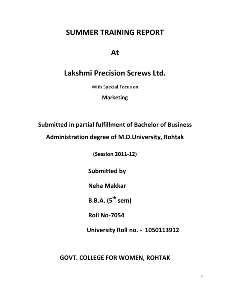I have completed my training from M/s Lakshmi Precision Screws. I have worked under the supervision of Mr. Sanjay Sharma & B.R Pattnaik they were good trainer. They provided me every information.