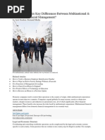 Financial Management Differences Among the few differences between financial management of a multinational company (MNC) and domestic company (DC) is that the MNC has got operations around the world. This means they have to deal with an international group of customers, shareholders and suppliers. What this means is that they are exposed to exchange rate changes, issues about raising capital internationally, and also different accounting standards of reporting. In my opinion, the most important difference between an MNC and DC is the exchange rate. The MNC have to take consideration into exchange rate fluctuations, as it affects their sales and investment decisions ( exchange rate changes will change their revenue from customers and also make investment decisions difficult, as they have to constantly convert back to their home country and see if the return is higher or if the investment is worth it ). It also affects the way they report their financial statements, which is balance sheet or profit and loss. The MNC faces more difficulty in reporting this, as they have various standards to follow. ( for example, how should they report the profit or loss for the year, in a foreign currency or home currency. Either way, it tells us different things about the MNC, as they can be making money in the home currency, but losing money in the foreign currency ). Generally speaking, the financial management for an MNC has to deal with the larger external influence affecting the company, and a large part of books for Multinational Financial Management or International Financial Management, deal with exchange rates. Hope this helps.