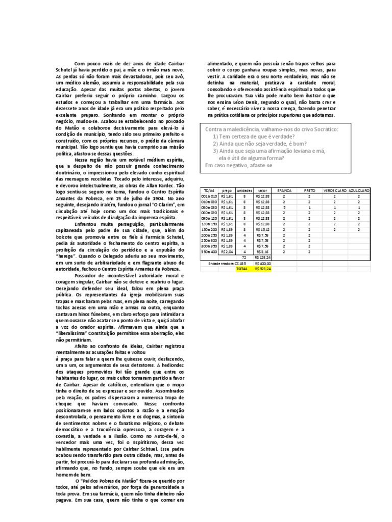 preo unidades valor R$ 1,61 8 R$ 12,88 R$ 1,61 8 R$ 12,88 R$ 1,61 8 R$ 12,88 R$ 1,61 8 R$ 12,88 R$ 1,61 8 R$ 12,88 R$ 1,61 8 R$ 12,88 R$ 1,89 8 R$ 15,12 R$ 1,89 4 R$ 7,56 R$ 1,89 4 R$ 7,56 R$ 1,89 4 R$ 7,56 R$ 2,04 4 R$ 8,16 72 R$ 123,24 Encadernadora CS 435 R$ 400,00 TOTAL R$ 523,24