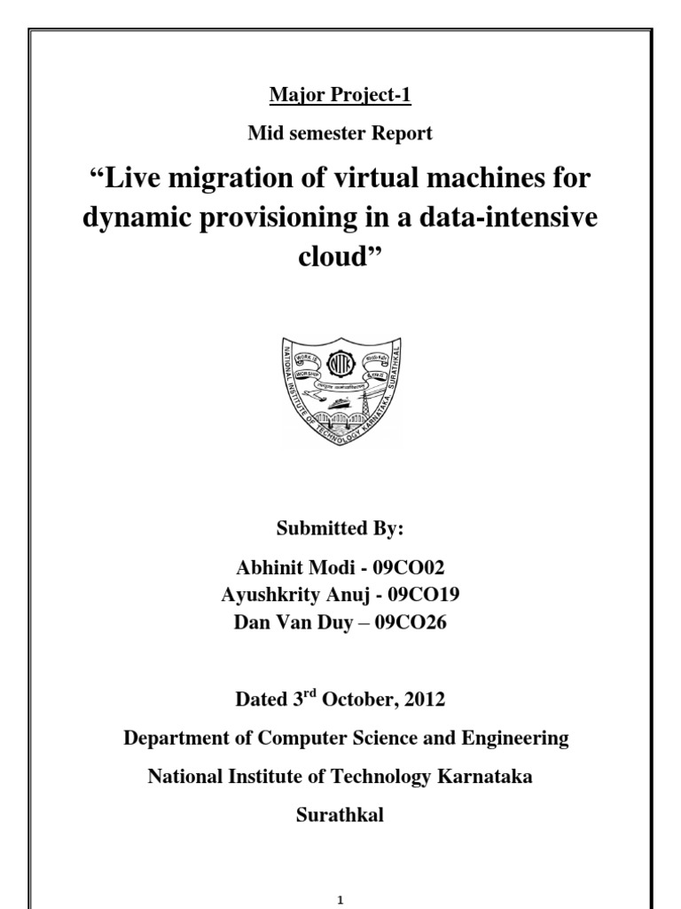 4. Work Done The proposal of the project was followed by a detailed study about the topic and its related areas. The entire task of live migration of virtual machine with local persistent storage was understood to be made up 3 main goals to be satisfied: Migration of run time state, migration of local persistent state and synchronization phase. Many papers and research journals were gone through to understand the approaches being followed to satisfy these goals. Few software and tools which could prove useful in the task were identified. Different approaches to achieve migration, synchronization were analyzed and a relative comparison was done. Advantages, disadvantages, improvements, working conditions of each approach for each target were elaborated. The primary concepts which were focused are elaborated below followed by the results and conclusions.