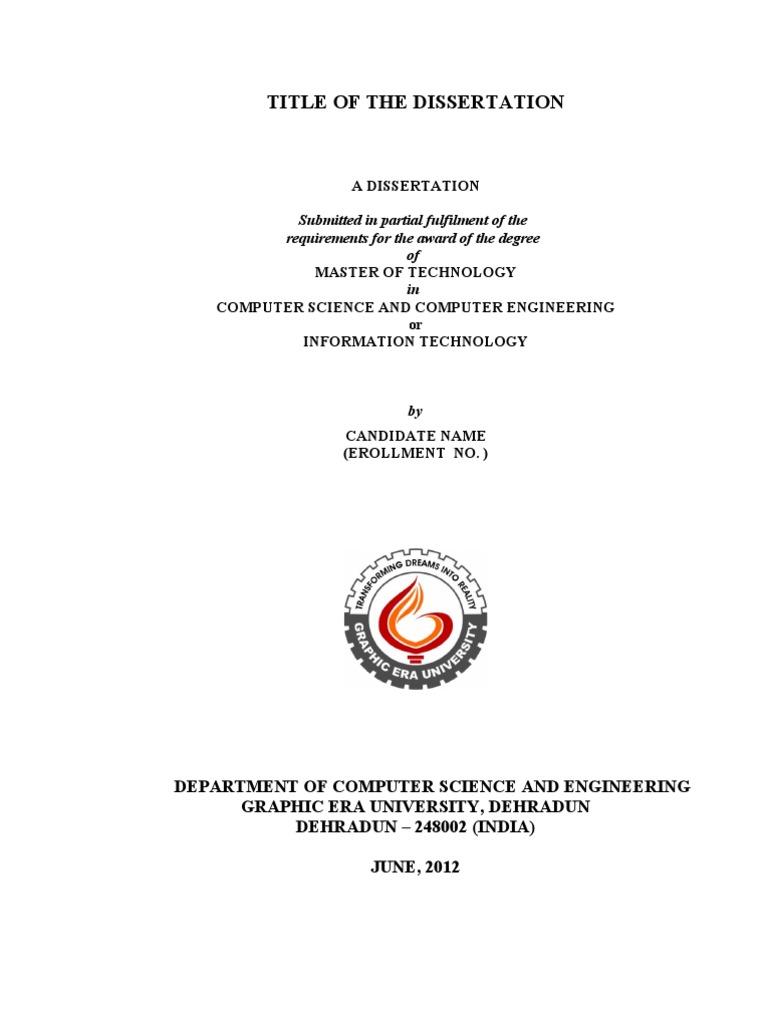 I hereby certify that the work which is being presented in the dissertation entitled TITLE OF THE DISSERTATION in partial fulfilment of the requirements for the award of the Degree of Master of Technology and submitted in the Department of Computer Science and Engineering / Information Technology of the Graphic Era University, Dehradun is an authentic record of my own work carried out during a period from January 2011 to July 2011 under the supervision of Name of Supervisor, Designation, Department of Computer Science and Engineering / Information Technology of the Graphic Era University, Dehradun. The matter presented in this dissertation has not been submitted by me for the award of any other degree of this or any other Institute.