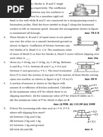Prism 1 with bar 2 of mass m placed on it gets a horizontal acceleration a directed to the left (Fig.). At what maximum value of this acceleration will the bar be still stationary relative to the prism, if the coefficient of friction between them k < cot ? In the arrangement shown in the figure, the floor is smooth and the friction exists only between the blocks. The coefficient of static friction s = 0.6 and coefficient of kinetic friction k = 0.4, the masses of the blocks are m1 = 20 kg and m2 = 30 kg. Find the acceleration of each block if : (a) (b) F = 100 N F = 200 N
