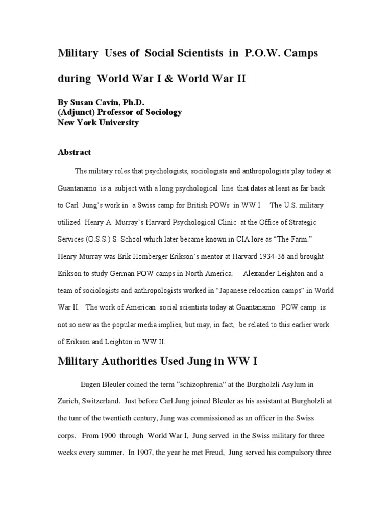 Military Uses of Social Scientists in POW Camps During World War I & World War II