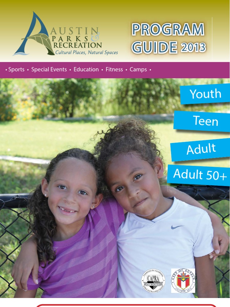 Youth Programs - Out of School Time Page 4 Youth Programs - Youth Sports Page 8 Youth Programs - Youth Enrichment Page 13 Family Programs Page 20 Adult Programs - Fitness Page 22 Adult Programs - Enrichment Page 26 Adaptive Programming Page 31 Adult 50+ Programs Page 32 Special Events Page 34 Registration Policies Page 37 Registration Form - Youth Page 38 Registration Form - Adult Page 39 City of Austin Information Page 40
