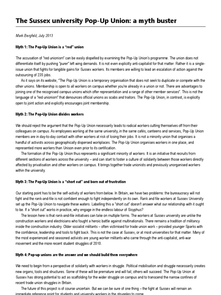 Mark Bergfeld addresses four common misconceptions among socialists about the Pop-Up Union recently formed by workers at Sussex university to combat privatisation threats.