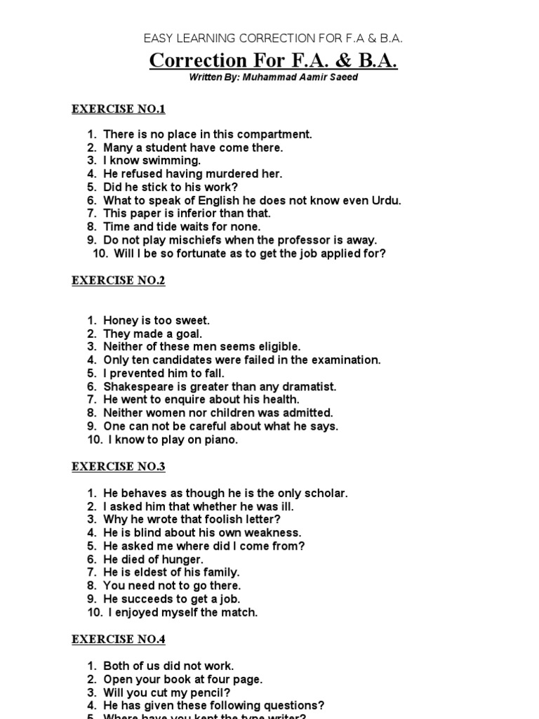 EASY LEARNING CORRECTION FOR F.A & B.A. 9. Mr. Ikram is able teacher. 10. The rooms roof is leaking.