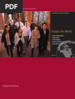 Academic Programs The University of Southern California upholds a tradition of academic strength at all levels from freshman year to postdoctoral fellowship. USC offers bachelors degrees in 172 undergraduate majors, and, as of fall 2012, graduate students were enrolled in nearly 392 masters, certificate, doctoral and professional degree programs. Alongside these many majors, USC has developed 155 different academic and professional minors the broadest selection of any U.S. university to encourage students to study subjects across widely separated fields. Students may select from a variety of degree combinations under the direction of the USC Dornsife College of Letters, Arts and Sciences, the Graduate School and the universitys 18professional schools. The USC Dornsife College of Letters, Arts and Sciences is at the heart of the universitys commitment to teaching and research in the humanities, social sciences and sciences. The largest and most diverse of USCs aca demic divisions in terms of both student enrollment and faculty the college serves nearly 8,000 undergraduates and more than 1,700 graduate students, and offers more than 150 undergraduate courses of study and a full range of masters and doctoral degree programs. In addition to the undergraduate degrees offered by the college, many of the universitys professional schools also offer bachelors degree programs. Faculty USCs full-time faculty numbers nearly 3,600. In addition, more than 4,000 volunteer faculty members are affiliated with the Keck School of Medicine of USC, and more than 400 volunteer faculty are affiliated with the USC School of Pharmacy. Research, teaching, patient care and community service are supported by a staff of more than 12,000. USCs faculty includes Nobel laureates George A. Olah, Murray Gell-Mann and Daniel McFadden as well as National Medal of Arts winner Morten Lauridsen, National Humanities Medal winner Kevin Starr, National Medal of Science winners Andrew Viterbi and Solomon Golomb, Turing Prize recipient Leonard Adleman, Pritzker Prize honoree Frank Gehry, MacArthur fellows Elyn Saks, Jacob Soll and Luis Alfaro, renowned violinist Midori Goto, Michael Waterman (a founder of computational genomics), Manuel Castells (interpreter of the Internet age), and Antonio Damasio (pioneer in the neural bases of emotions). More than 200 faculty members have received prestigious academic and professional awards from organizations as varied as the National Institutes of Health, the National Science Foundation, the Department of Homeland Security, the National Endowment for the Humanities, the Alfred P. Sloan Foundation, the John Simon Guggenheim Foundation and the Academy of Motion Picture Arts and Sciences. Also on the faculty are members of the National Academy of Sciences (16), National Academy of Engineering (37), National Academy of Education (1), Institute of Medicine (17) and American Academy of Arts and Sciences (32). Students Diversity is a hallmark of the student community. USC students come from all 50 states, five territories and 115 countries. There are 40,000 students enrolled at the university, including some 18,000 undergraduates and 22,000 graduate and professional students. In fall 2012, nearly 50 percent of new freshmen were from California. Approximately 40percent of the universitys total enrollment is composed of American minorities; a further 19 percent are international students. For 10 consecutive years, USC has been at the top of American universities in terms of international enrollment. Among undergraduates, approximately 50 percent are men and 50percent are women. The middle 50 percent SAT range of the 2012 enrolled freshman class was 19502190. The average unweighted GPA was 3.70. In fall 2012, there were 251 National Merit Scholars. USC students consistently earn nationally competitive scholarships and fellowships, including Fulbright, Luce, Marshall, Truman, Rhodes and Churchill scholarships. Research Support USC is one of a small number of premier research institutions producing a steady stream of new knowledge, art and technology. With more than $600 million in annual research expenditures, it ranks among the top 10 private universities in federal research activity. Libraries The USC Libraries develop collections and services that support and encourage the academic endeavors of faculty, students and staff; build a community of critical consumers of information; and help develop engaged world citizens. With more than 4 million volumes, 3million photographs, 6 million microforms, and subscriptions to more than 50,000 serials and 33,000 electronic journals, the USC Libraries actively support the discovery, creation and preservation of knowledge. The largest of USCs libraries is the Edward L. Doheny Jr. Memorial Library, which contains the research collections for most of the humanities and social sciences. Doheny Memorial Library also houses the Cinematic Arts Library, the Music Library, the East Asian Library and Special Collections. The USC Libraries include a number of specialized libraries that serve the unique research needs of the USC community. Three libraries also are devoted to collections for their respective professions: the Asa V. Call Law Library, the Eileen and Kenneth T. Norris Medical Library, and the Jennifer Ann Wilson Dental Library and Learning Center. The Thomas and Dorothy Leavey Library features a core collection of books and journals, two electronic information commons with nearly 200 computer workstations, more than 50 collaborative workspaces, two hands-on learning classrooms, a multimedia auditorium and more than 1,400 reader seats in a variety of formal and informal arrangements. Leavey provides faculty and students with tools to accomplish research using both traditional and electronic resources. Within Leavey, librarians and staff provide faculty with assistance in using technology and information resources to develop materials for instruction and scholarly
