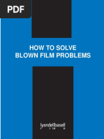 instructions. Once the film line has equilibrated at the desired conditions, measure output and record resin type, lot number and run conditions in appropriate logs. Shutdown Procedure for Blown Film Extruders Cool shutdowns are essential for producing high quality film with minimum clean-up and purging. 1. When possible, plan ahead for a shutdown and reduce the die block and die zone temperatures to 300F about an hour before you plan to cool down the extruder. 2. About 30 minutes before you shut down, you can reduce the extruder barrel temperature to 300F. You should continue to run the extruder, while monitoring adapter and die pressures carefully to keep them comfortably below any automatic shutdown set-points (usually around 6,000 psi, but can be any point below 10,000 psi). If pressures are too high, you can reduce them by lowering the RPM of the extruder screw, but this action also necessitates decreasing line speed in order to maintain the gauge of the film. 3. It may be difficult to lower the melt temperature if high levels of output are maintained, because of shear heat generated by the screw. Again, reducing the RPM of the screw enables the temperature of the melt to go down faster. 4. Once the temperatures are down to 300F, replace the run resin with a well-stabilized purge compound and slow the extruder to a moderate output until the purge has fully replaced the run resin in the melt exiting the die. At this point, you should stop the extruder,