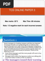 4. whittle 5. Correct Answer: 1. Question 57: A man ate 100 bananas in five days, each day eating 6 more than the previous day. How many bananas did he eat on the first day? 1. 8. 2. 7 3. 9 4. 10 5. Correct Answer: 1. Question 58: A large crowd _____ in front of the station. 1. gathering 2. to gather 3. had gathered 4. had gathering 5. Correct Answer: 3. Question 59: Find the highest common factor of 36 and 84? 1. 4 2. 6 3. 12 4. 18 5. Correct Answer: 3. Question 60: A person enters into a competition of hitting a target, If he hits the target, he gets 10 rupees. Otherwise, he has to pay 5 rupees. If the probability of his hitting the target is 3/10 find expectation. 1. Rs.0.50 (loss) 2. Rs.1.50 (loss) 3. Rs.0.50 (profit) 4. Rs.2.50 (loss) 5. Rs.2.00 (loss) Correct Answer: 1. Question 61: The letters A, B, C, D, E, F and G, not necessarily in that order, stand for seven consecutive integers from 1 to 10 D is 3 less than A B is the middle term F is as much less than B as C is greater than D G is greater than F A - F = ? 1. 2. 3. 4. 3 1 2 CANT BE DETERMINED