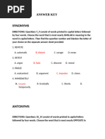 Antonyms 1. The correct answer is (C). Literally, palatable means "acceptable to the taste" or "agreeable in flavor." The word unappetizing means "not appetizing", or "not palatable." Analogies 1. The correct answer is (D). To be impregnable is to be able to withstand almost any kind of assault; to be immutable is to be unchangeable and therefore able to turn away virtually any kind of alteration. Sentence Completions 1. The correct answer is (C). To fit the idea of inventions originating as toys, we want the second bank to suggest "results" that are not serious or important the opposite of what we think about toys. Hence, "weighty." Reading Comprehension 1. The correct answer is (A). Notice that the first paragraph says that Morrison "bristles" at how her work is sometimes described, and that the second and third paragraphs quote her own comments. Clearly, the passage is mainly concerned with presenting Morrison's own viewpoint about her writing. 2. The correct answer is (D). See the first sentence of the second paragraph, which makes clear the underlying point being made by the author in citing the use of the supernatural in Morrison's writing. Math Multiple-Choice 1. The correct answer is (E). x2 4x 5 = (x 5)(x + 1), and x2 6x 7 = (x 7)(x + 1). The common factor is x + 1, choice (E). Quantitative Comparisons