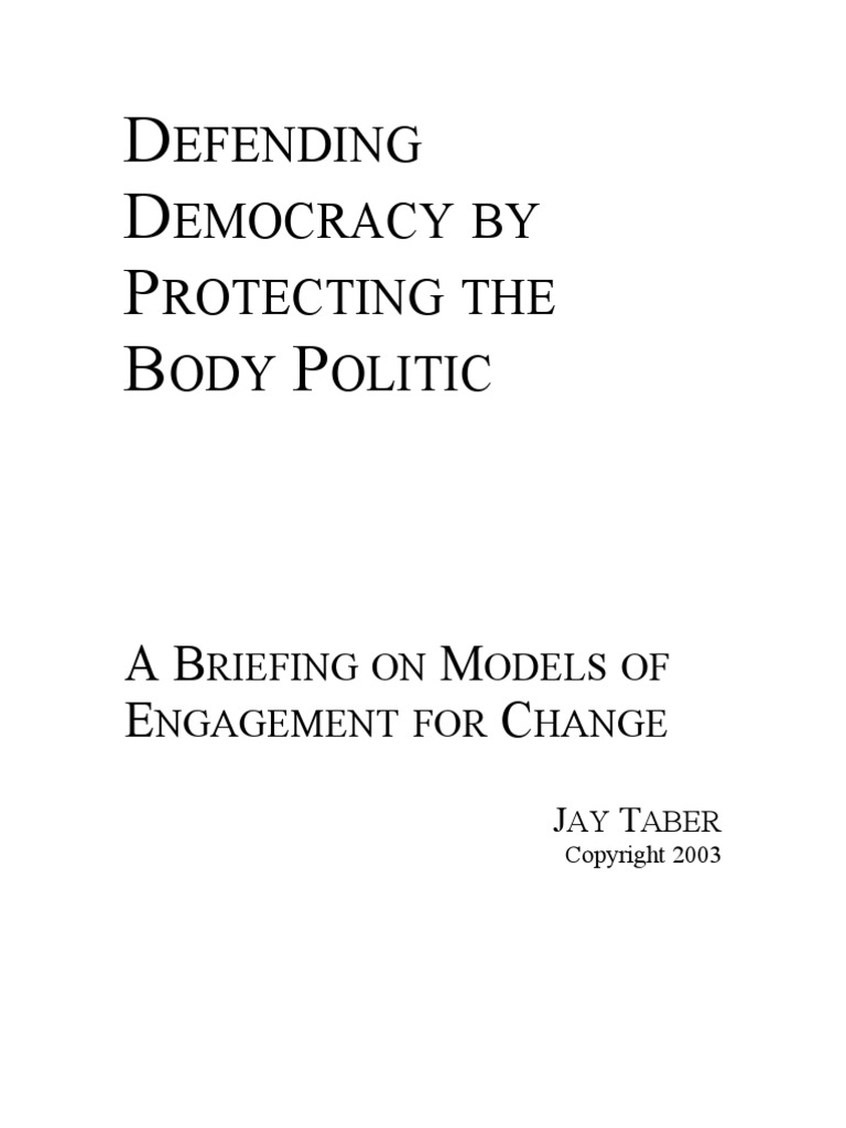 In September 2000, Jay Taber was presented the Defender of Democracy award by