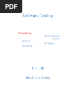 State Transition Testing As the name suggests, test cases are designed to test the transition between the states by creating the events that cause the transition. Branch Testing In branch testing, test cases are designed to exercise control flow branches or decision points in a unit. This is usually aimed at achieving a target level of Decision Coverage. Branch Coverage, need to test both branches of IF and ELSE. All branches and compound conditions (e.g. loops and array handling) within the branch should be exercised at least once. Condition Testing The object of condition testing is to design test cases to show that the individual components of logical conditions and combinations of the individual components are correct. Test cases are designed to test the individual elements of logical expressions, both within branch conditions and within other expressions in a unit. Data Definition Use Testing Data definition-use testing designs test cases to test pairs of data definitions and uses. Data definition is anywhere that the value of a data item is set. Data use is anywhere that a data item is read or used. The objective is to create test cases that will drive execution through paths between specific definitions and uses. Internal Boundary Value Testing In many cases, partitions and their boundaries can be identified from a functional specification for a unit, as described under equivalence partitioning and boundary value analysis above. However, a unit may also have internal boundary values that can only be identified from a structural specification. Error Guessing It is a test case design technique where the testers use their experience to guess the possible errors that might occur and design test cases accordingly to uncover them. Using any or a combination of the above described test case design tec