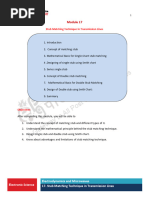 If the distance between the stubs is xed a priori, the solution for certain load and input admittances is not guaranteed to exist. This limitation is not present in the case of a triple stub matching network, even if the relative distances are xed a priori (see Fig. 6.17). In this case, in fact, the desired matching can always be obtained, provided convenient stub lengths are selected. This device can be useful in the laboratory: indeed, some implementation exist, where the stub lengths are changed by means of sliding pistons. If we want to design such a matching network, we can use the method described above. The 14