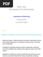 The line AB could be lengthened by any multiple of /2. The input impedance of the matching network would still be Z at the design frequency, but its bandwidth would be smaller. There is indeed a general rule: the bandwidth of a device is inversely related to its electrical length. A similar remark holds for the stub. If the stub were to be connected in series to the main line, the design procedure would be only slightly modied. In this case we would have employed an impedance Smith chart: no other change would be required. The procedure described above to design a line matching network can be generalized to solve the problem of designing a conjugate matching network. In this case the arrival point on the Smith chart is not the origin but a generic point, corresponding to the complex conjugate of the generator internal impedance. Let us make reference to a shunt stub. The matching network structure is the same as before: a transmission line length that allows the desired real part of the input admittance to be obtained; a shunt susceptance that modies the imaginary part of the input admittance, so that it has the desired value. The problem, now, is that the rst step is not always successful. Indeed, it is evident from Fig. 6.10 that, for a given load admittance YL , with a matching network of the type shown in Fig. 6.6 only the points of the region Rd can be reached. In fact, when the line length AB is changed, the real part of the input admittance is always comprised between gm and gM dened by the intersection of the || =constant circle through yL and the real axis. We nd readily gm = 1 |L | 1 1 = = , gM 1 + |L | S 9