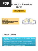 1. What are the advantages of BJT? 2. Explain the various types of BJT. 3. Explain the doping distribution of BJT. 4. Compare npn and pnp transistors. 5. Explain the basic principle of depletion region formation in BJT. 6. Explain the operation of BJT in active, saturation and cutoff region for CE conguration. 7. Explain the operation of BJT in active, saturation and cutoff region for CB conguration. 8. Explain the operation of BJT in active, saturation and cutoff region for CC conguration. 9. Why named Transistor? 10. Explain the various current components of BJT in active region. 11. Explain base-width modulation. 12. What are the effects of base-width modulation? 13. Explain the input and output characteristics of BJT in CE conguration. 14. Explain the input and output characteristics of BJT in CB conguration. 15. Explain the input and output characteristics of BJT in CC conguration. 16. Explain the Ebers-Moll model of BJT with a suitable diagram. 17. Explain the operation of BJT as a switch. 18. Explain the various switching parameters using suitable graph. 19. What are the factors that contributes for the delay time in the BJT ? 20. What is the reason for storage time n BJT ? 21. Write a note on transistor breakdown. 22. Explain reach-through in BJT. 23. Explain avalanche in BJT.