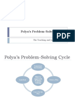 In 1945 George Polya published the book How To Solve It which quickly became his most prized publication. It sold over one million copies and has been translated into 17 languages. In this book he identies four basic principles of problem solving. Polyas First Principle: Understand the problem This seems so obvious that it is often not even mentioned, yet studens are often stymied in their eorts to solve problems simply because they dont understand it fully, or even in part. Polya taught teachers to ask students questions such as: