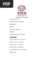 The Zero error of the Screw gauge if any is noted. The wire is placed between the shafts S1 and S2 and the head Scale is rotated anti-clock wise so that the shafts hold the wire tightly. 5. The value of the pitch scale division which just precedes edge of the head scale is noted as pitch scale reading (P.S.R) 6. The value of the head scale division which just coincides with the index line is the observed Head Scale Reading. (H.S.R) 7. The Diameter of the wire = P.S.R. + (H.S.R. x L.C) 8. The wire is placed at different positions in between the studs and the observations are recorded. S.No P.S.R Observed Corrected C. H.S.R x L.C D= P.S.R + (H.S.R x H.S.R H.S.R L.C)