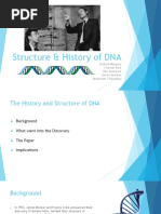 MOLECULAR STRUCTURE OF NUCLEIC ACIDS A Structure for Deoxyribose Nucleic Acid We wish to suggest a structure for the salt of deoxyribose nucleic acid (D.N.A.). This structure has novel features which are of considerable biological interest. A structure for nucleic acid has already been proposed by Pauling and Corey (1). They kindly made their manuscript available to us in advance of publication. Their model consists of three intertwined chains, with the phosphates near the fibre axis, and the bases on the outside. In our opinion, this structure is unsatisfactory for two reasons: (1) We believe that the material which gives the X-ray diagrams is the salt, not the free acid. Without the acidic hydrogen atoms it is not clear what forces would hold the structure together, especially as the negatively charged phosphates near the axis will repel each other. (2) Some of the van der Waals distances appear to be too small. Another three-chain structure has also been suggested by Fraser (in the press). In his model the phosphates are on the outside and the bases on the inside, linked together by hydrogen bonds. This structure as described is rather ill-defined, and for this reason we shall not comment on it. We wish to put forward a radically different structure for the salt of deoxyribose nucleic acid. This structure has two helical chains each coiled round the same axis (see diagram). We have made the usual chemical assumptions, namely, that each chain consists of phosphate diester groups joining -D-deoxyribofuranose residues with 3',5' linkages. The two chains (but not their bases) are related by a dyad perpendicular to the fibre axis. Both chains follow right- handed helices, but owing to the dyad the sequences of the atoms in the two chains run in opposite directions. Each chain loosely resembles Furberg's (2 ) model No. 1; that is, the bases are on the inside of the helix and the phosphates on the outside. The configuration of the sugar and the atoms near it is close to Furberg's 'standard configuration', the sugar being roughly perpendicular to the attached base. There is a residue on each every 3.4 A. in the z-direction. We have assumed an angle of 36 between adjacent residues in the same chain, so that the structure repeats after 10 residues on each chain, that is, after 34 A. The distance of a phosphorus atom from the fibre axis is 10 A. As the phosphates are on the outside, cations have easy access to them. The structure is an open one, and its water content is rather high. At lower water contents we would expect the bases to tilt so that the structure could become more compact. 61